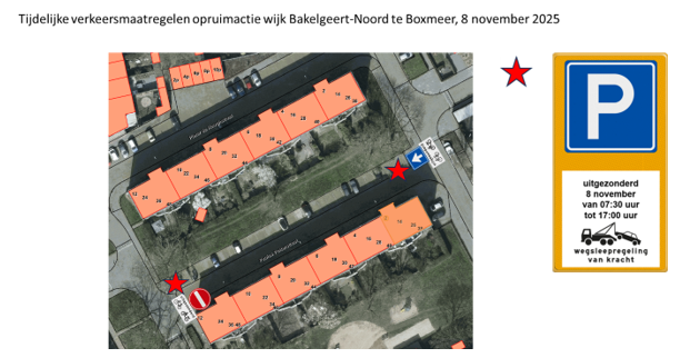 Verkeersbesluit voor het instellen van tijdelijke verkeersmaatregelen in verband met de opruimactie wijk Bakelgeert-Noord op zaterdag 8 november 2025 te Boxmeer