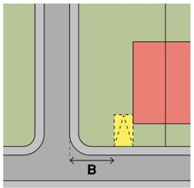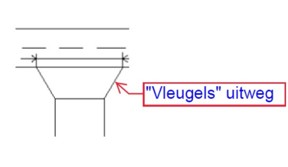 De breedte van een uitweg, inclusief kantopsluiting en "vleugels" (zie afbeelding 2), wordt gemeten op de perceelgrens tussen perceel en openbare ruimte, zoals weergegeven in afbeelding 3.