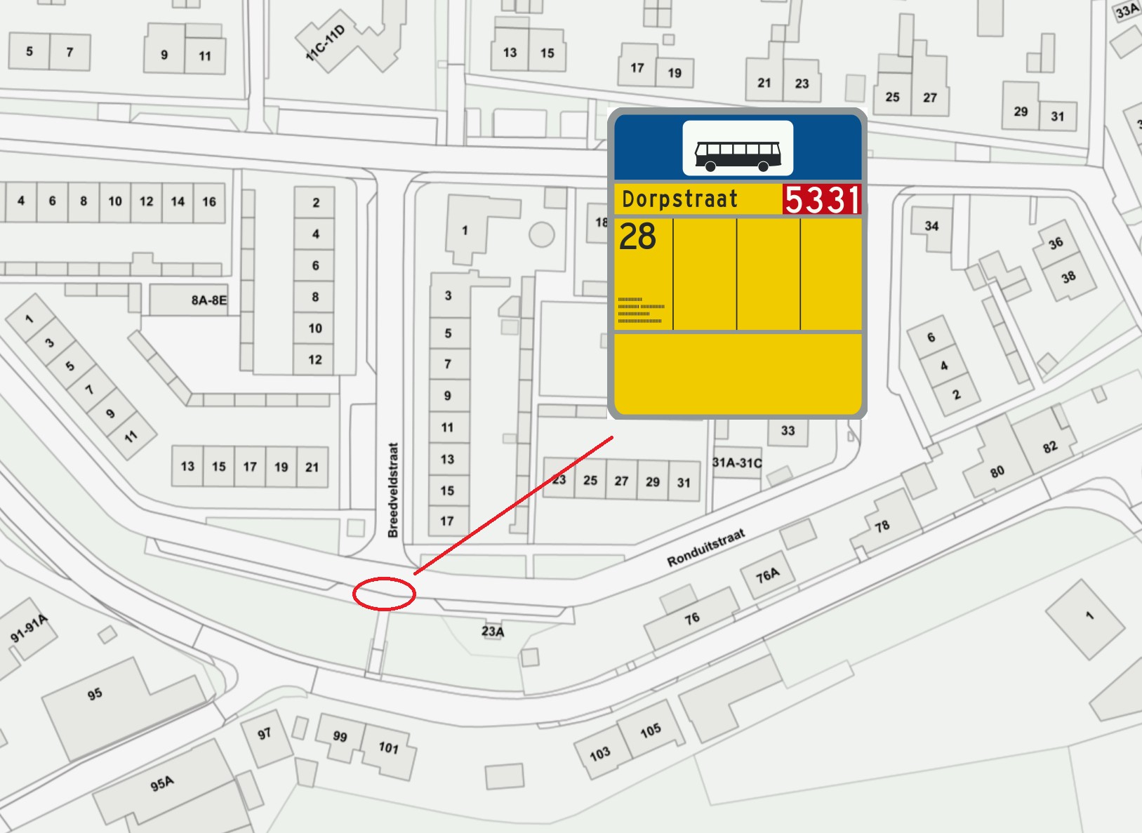 De bushalteplaats aan te duiden met bord L3 (bushalte) van bijlage I van het Reglement verkeersregels en verkeerstekens 1990 (RVV 1990).