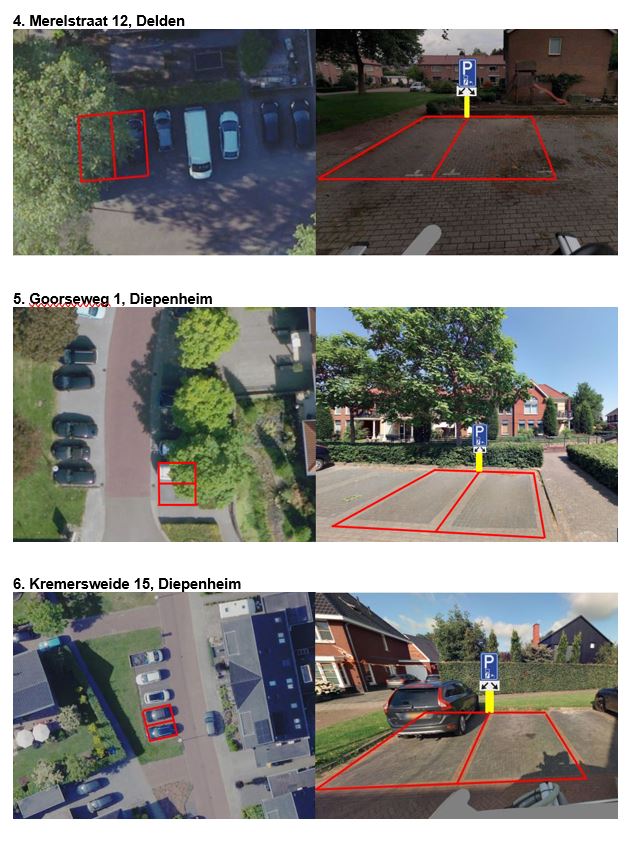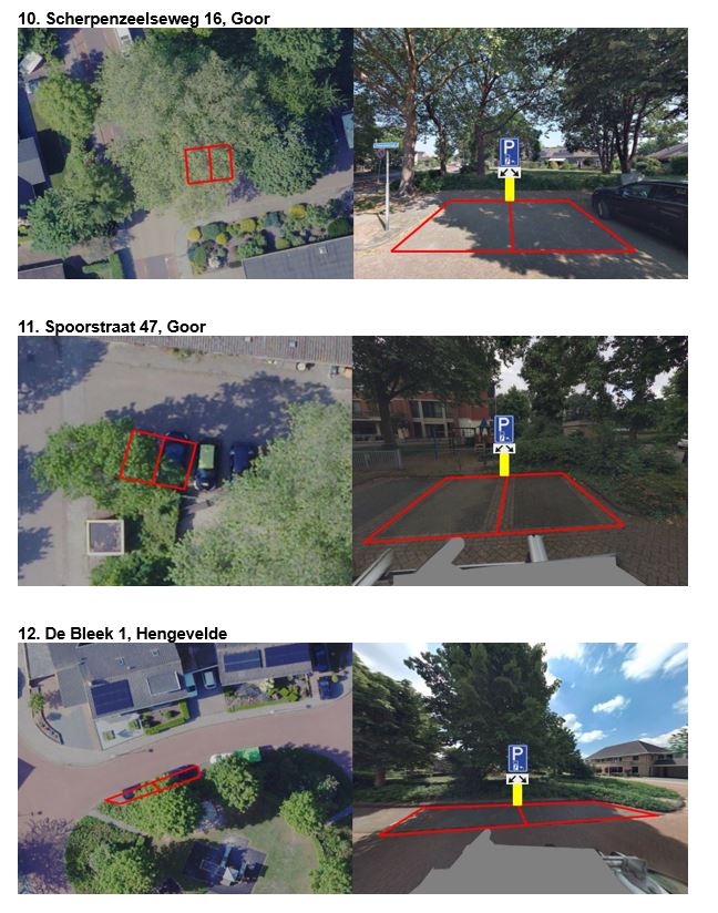 Zie in de bijlage de exacte locaties van de laadpalen en de te reserveren parkeerplaatsen.