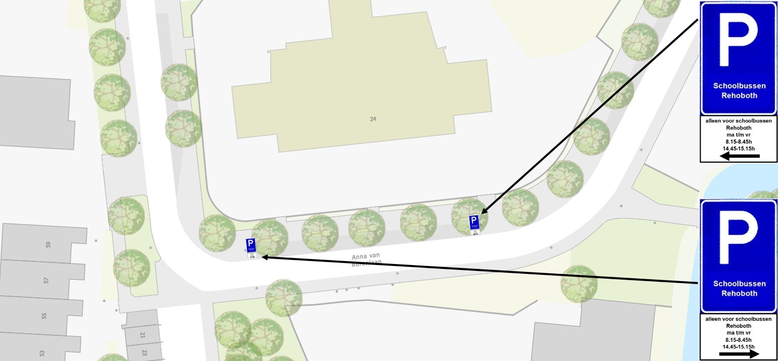 • dat voor de school een parkeerstrook is gelegen waar deze schoolbussen kunnen parkeren om de kinderen te brengen en te halen;