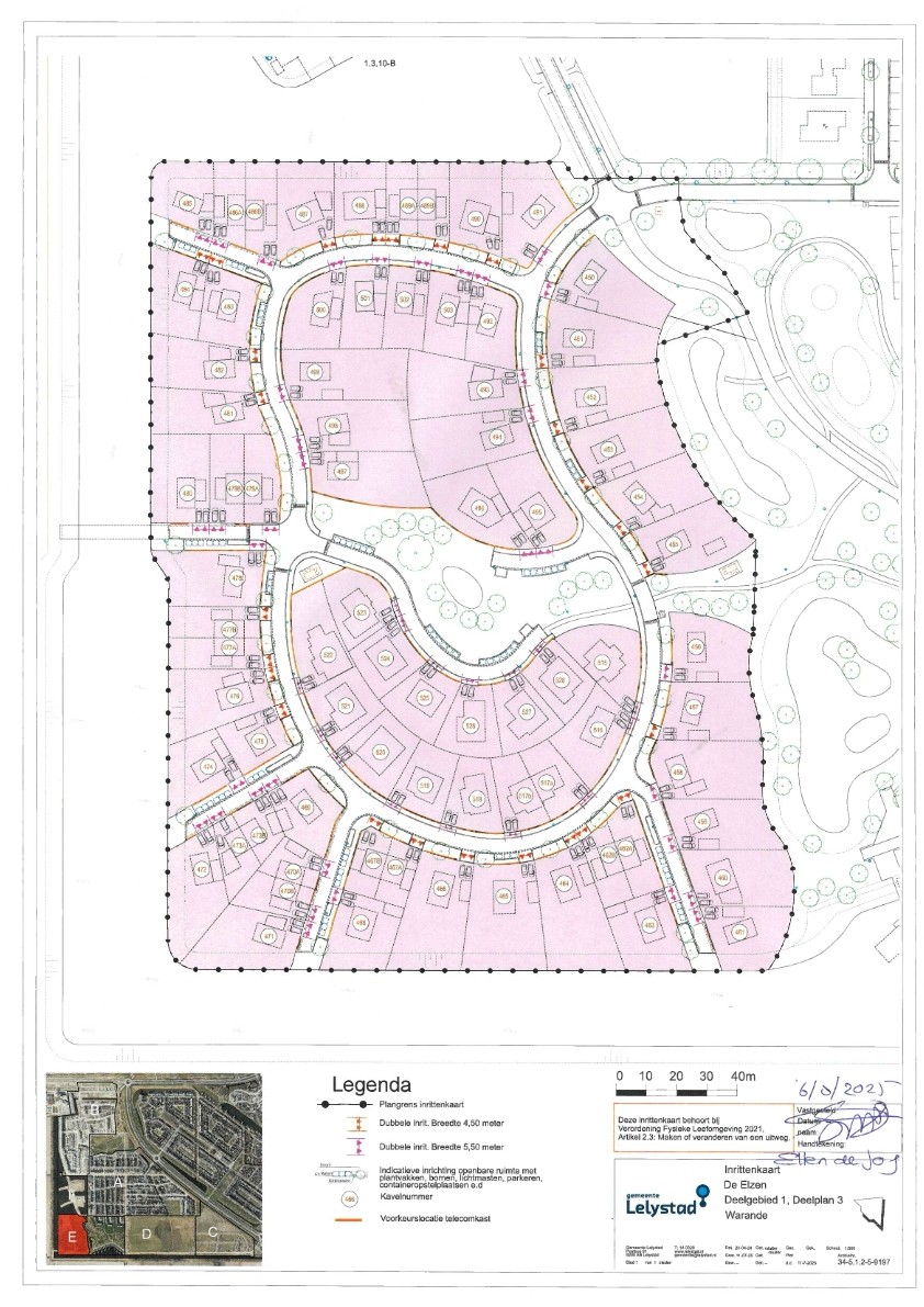 De navolgende inrittenkaart Warande, Deelgebied 1, Deelplan 3, De Elzen met datum 6 augustus 2025 vast te stellen en eerdere versies hiermee te vervangen.