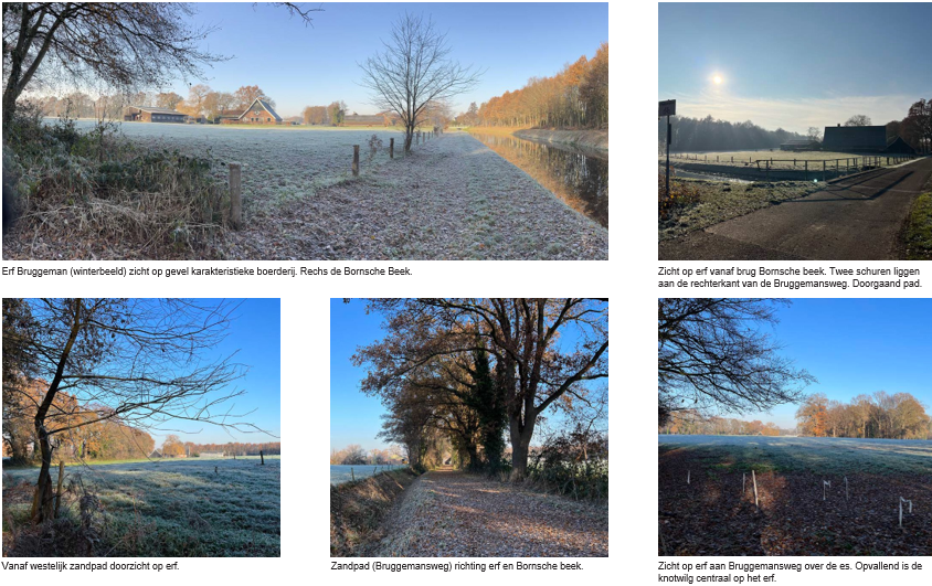 Het erf Bruggeman, gelegen aan de Bornsche Beek, is onderdeel van bestaande knooperven. De kleinschalige essen liggen ten zuiden en westen van het erf. De erven zijn door middel van wegen en wandelpaden met elkaar verbonden. Een nieuw te ontwikkelen woning moet passen in deze structuur, het zicht op de essen en de openheid tussen de verschillende erven moeten gehandhaafd blijven.