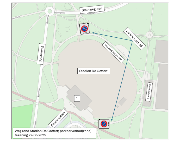dat met borden E1 (zone) als bedoeld in bijlage 1 van het Reglement verkeersregels en verkeerstekens 1990 (RVV 1990) een parkeerverbod is aangeduid voor deze weg, vanaf de Steinweglaan en vanaf het punt ca. 40 meter ten zuidoosten van pand Stadionplein 1;