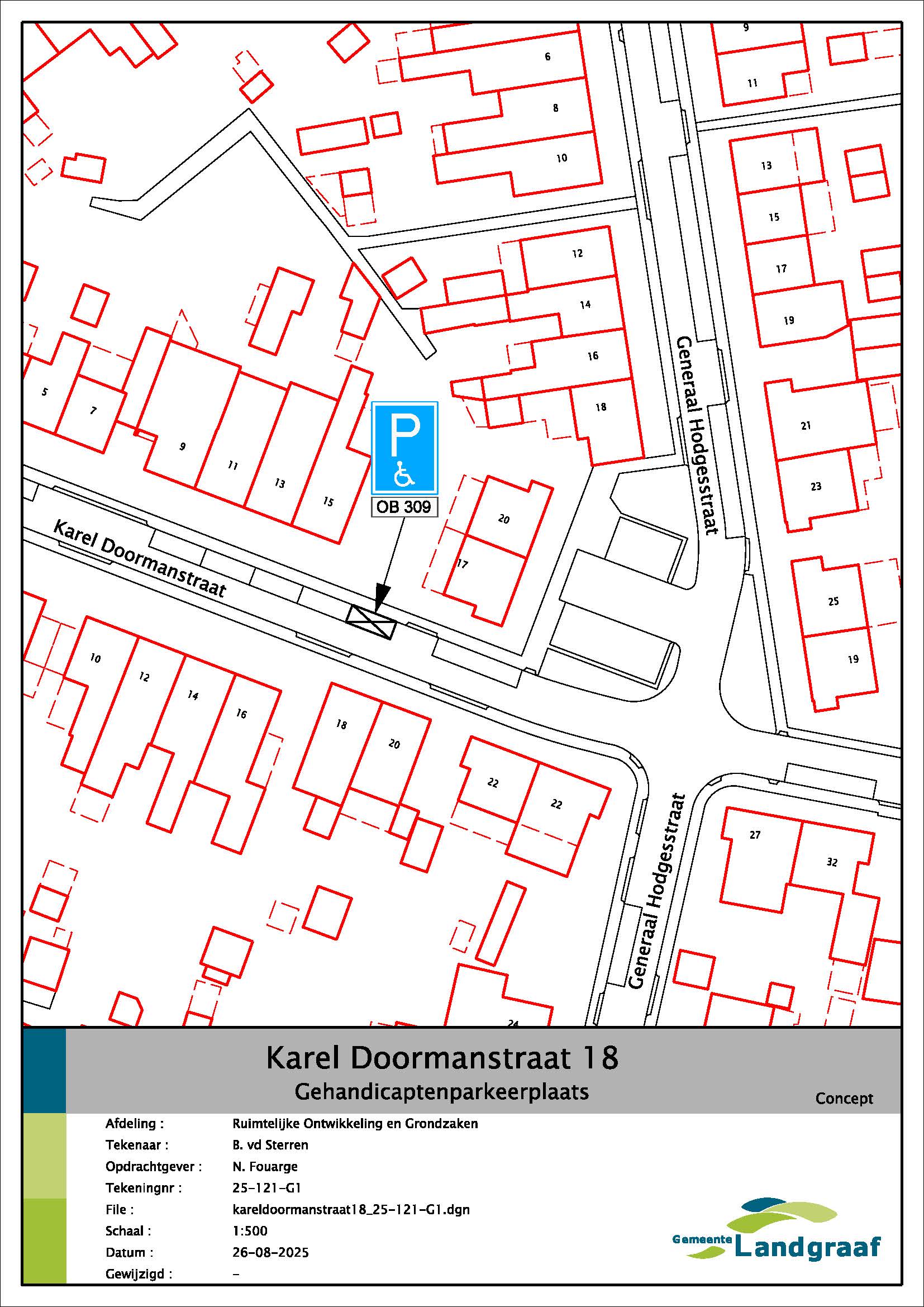 Gemeente Landgraaf – Verkeersbesluit tot het aanwijzen en inrichten van een gehandicaptenparkeerplaats nabij de Karel Doormanstraat 18