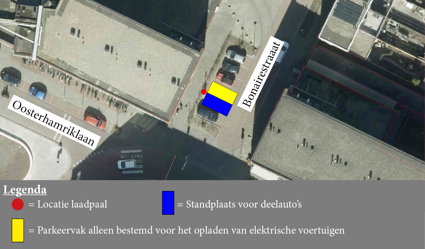 Wij besluiten op grond van bovenvermelde overwegingen bij de laadpaallocatie aan de zuidwestkant van de Bonairestraat nabij de Oosterhamriklaan: