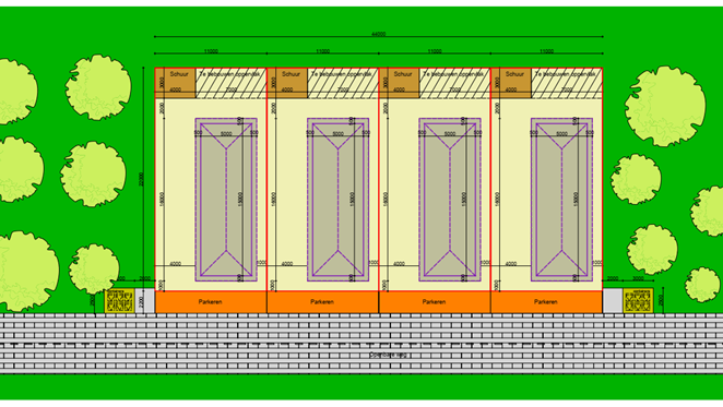 Afbeelding 2: voorbeeld nieuwe locatie met vier huurstandplaatsen en huurwoonwagens