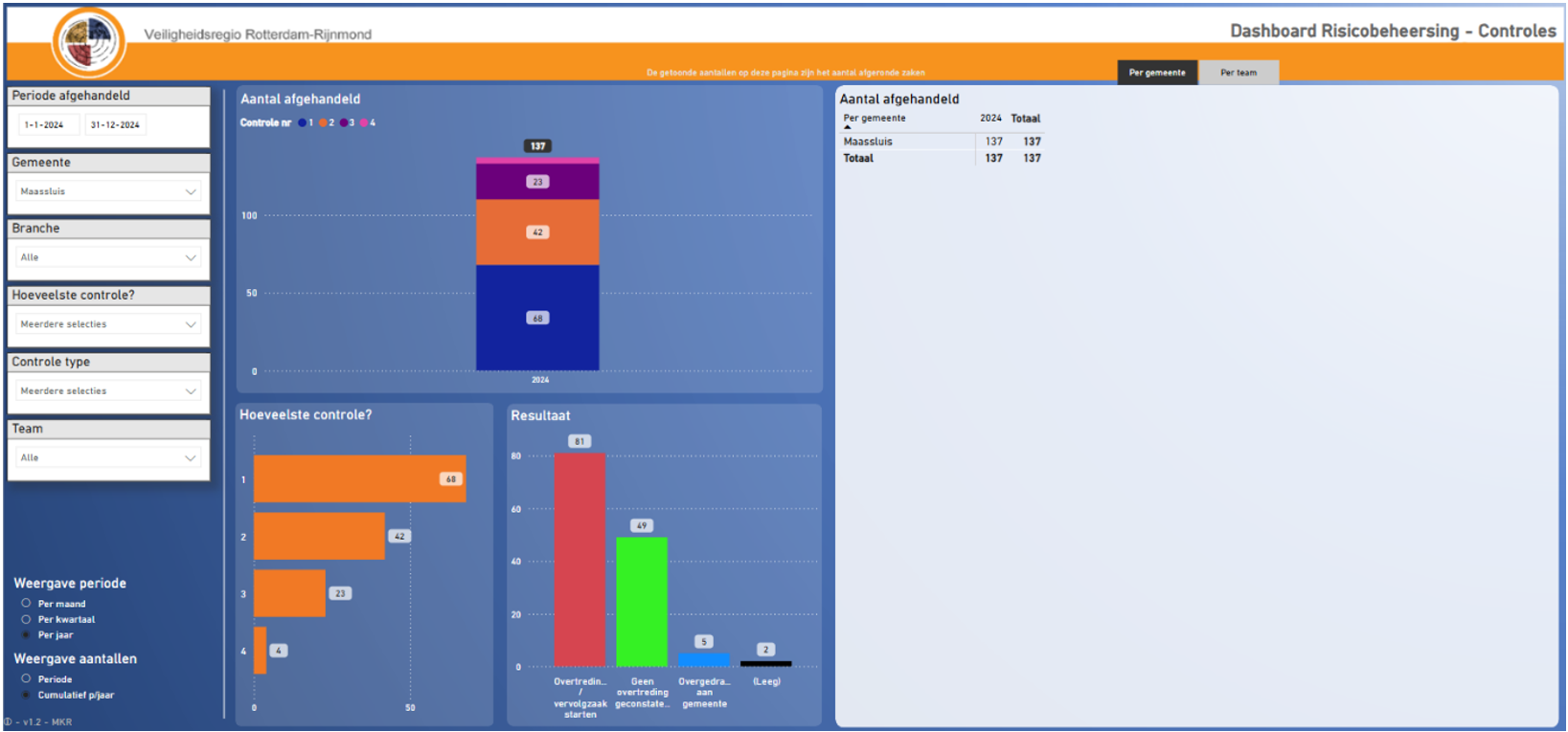 In mandaat is door de Veiligheidsregio Rotterdam-Rijnmond, afd. Risicobeheersing ook een aantal handhavingszaken opgepakt. De jaarrapportage over het Integraal Handhavingsprogramma (IHP) 2024 biedt de controleresultaten van de (integrale) inzet op de meest risicovolle objecten en instellingen in de gemeente Maassluis. Tijdens de controles wordt gekeken of voldaan wordt aan wet- en regelgeving op het gebied van omgevingsrecht: het naleefgedrag.