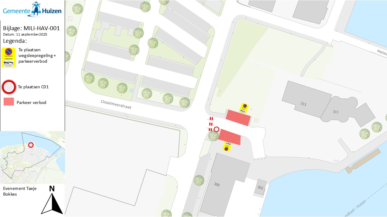 Verkeersbesluit Taeje Bokkes race afsluiten Havenstraat ter hoogte van nummer 300 te Huizen