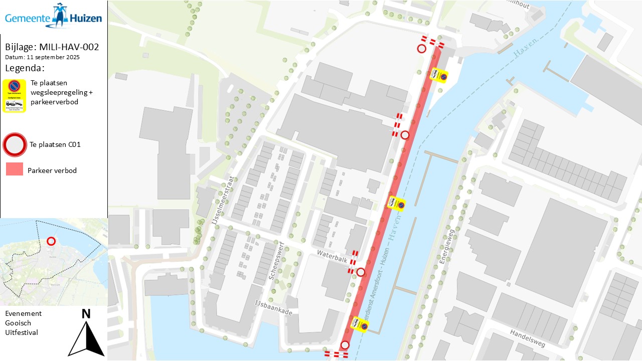 Verkeersbesluit Gooisch uitfestival afsluiten Havenstraat tussen IJsbaankade en de IJsselmeerstraat te Huizen