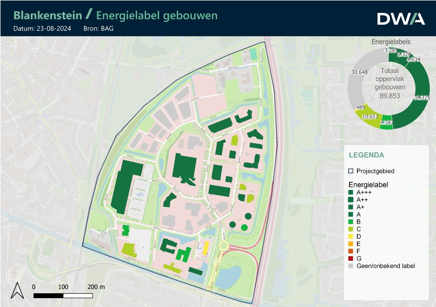 De bedrijfsgebouwen op Blankenstein zijn allemaal na 1992 gebouwd. Dit betekent dat gevel, dak en vloer zijn geïsoleerd met een minimale Rc-waarde van 2,5. Dit is een redelijk isolatieniveau. In de regel geldt dat na-isolatie financieel niet aantrekkelijk is. Wel kan het lonen om het dubbelglas te vervangen voor HR++-glas. Daarnaast zijn elf panden na 2018 gebouwd. Deze zijn in de basis goed geïsoleerd en in de regel al aardgasvrij. Op Blankenstein ligt daarom de focus op het verduurzamen van de installaties en/of duurzame opwekking.