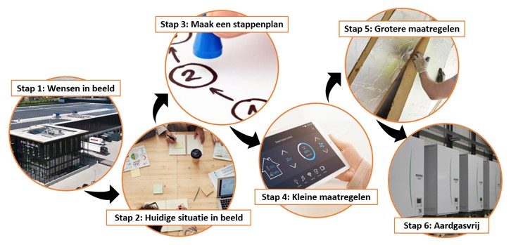 Welke stappen u als bedrijf, individueel of samen met andere bedrijven kunt zetten om aardgasvrij te worden;