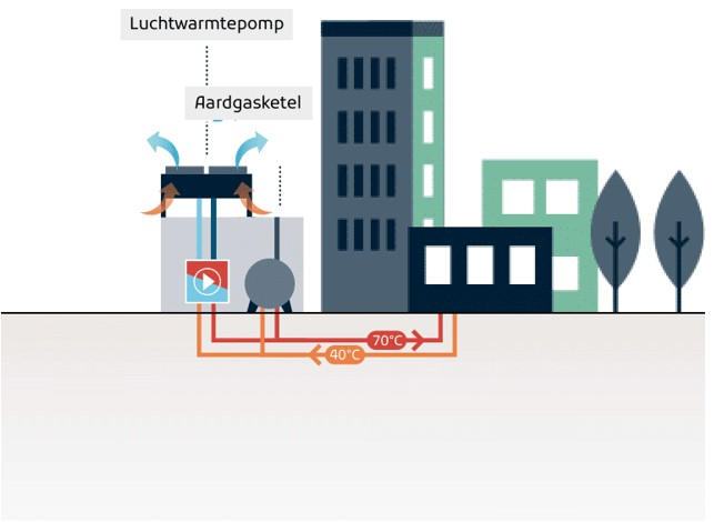 De meest verregaande verplichte maatregel uit de EML is het plaatsen van een elektrische warmtepomp naast de bestaande verwarmingsketel. Dit noemen we ook wel een hybride opstelling. Er kan ook verder worden gekeken naar volledig aardgasvrije verwarming van gebouwen. Voor de bedrijven op Blankenstein zijn daarvoor twee mogelijkheden: