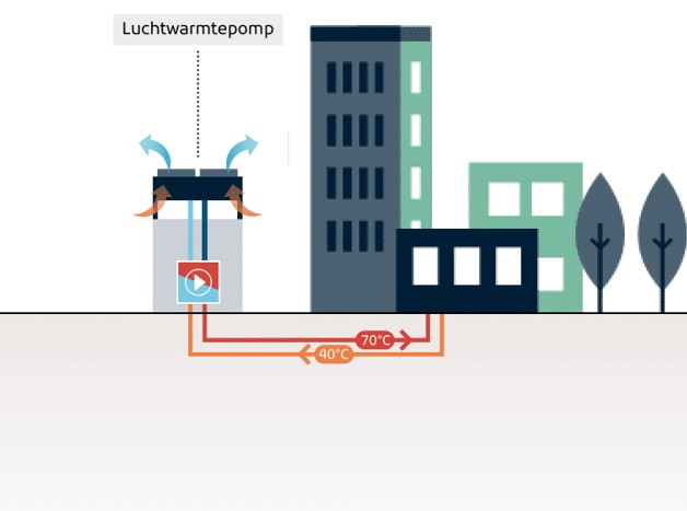 De water/water-warmtepomp in combinatie met een warmte-koudeopslag (WKO) per gebouw: hierbij worden warmte en koude uit de bodem gehaald om te zorgen voor stabielere verwarming.