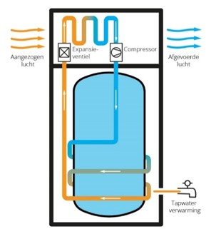De warmtepompboiler is interessant bij een gebouw waar de vraag naar warm tapwater hoog is. Een warmtepompboiler haalt warmte uit de lucht en gebruikt dit om het tapwater te verwarmen. Wanneer de boiler is aangesloten op mechanische balansventilatie in het huis, kan de afgekoelde lucht in de zomer vaak gebruikt worden om het huis te koelen. In de winter wordt de gekoelde lucht naar buiten geblazen. Voor de warmtepompboiler heb je ruimte nodig, omdat hij net als de binnenunit van een gewone warmtepomp ongeveer het formaat van een koelkast heeft.