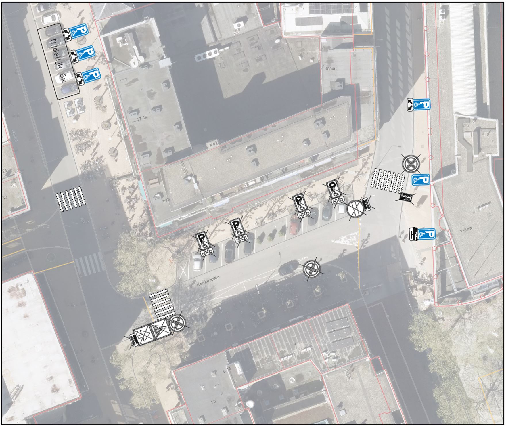 Het Kwinkenplein krijgt een andere, ruimere opzet waarbij meer groen wordt toegevoegd en het plein een belangrijk onderdeel gaat worden voor de oost-westfietsroute door de binnenstad. Door deze aanpassing worden er acht algemene gehandicaptenparkeerplaatsen (ggp) en één parkeerplaats bestemd voor autodate (Greenwheels) verplaatst. Om de toegankelijkheid voor mindervaliden niet te benadelen wordt een groot deel van de gpp’s in de Kreupelstraat teruggebracht, nabij het Kwinkenplein. De loopafstand tot de Grote Markt neemt daardoor nauwelijks toe en de loopafstand naar het gemeenteloket wordt korter. Zes gehandicaptenparkeerplaatsen worden verplaatst langs de Kreupelstraat waarvan er 4, bij het gemeenteloket komen. De andere twee zijn meer richting het Sint Walburgplein gelegen. De Werkgroep Toegankelijk Groningen heeft positief gereageerd op dit plan. De overige twee gehandicaptenparkeerplaatsen op het Kwinkenplein zullen elders in de binnenstad gerealiseerd worden. De gehandicaptenparkeerplaatsen worden aangegeven met de borden E6, zoals in situatieschets 1 in dit document weergegeven. Bij de gehandicaptenparkeerplaats die het dichtst bij het gemeenteloket is gelegen, wordt een beperking van maximale parkeerduur opgelegd van 20 minuten. Hiermee is de parkeerplaats beschikbaar om een bezoek te brengen aan het gemeenteloket centrum en komt deze parkeerplaats met enige regelmaat vrij.