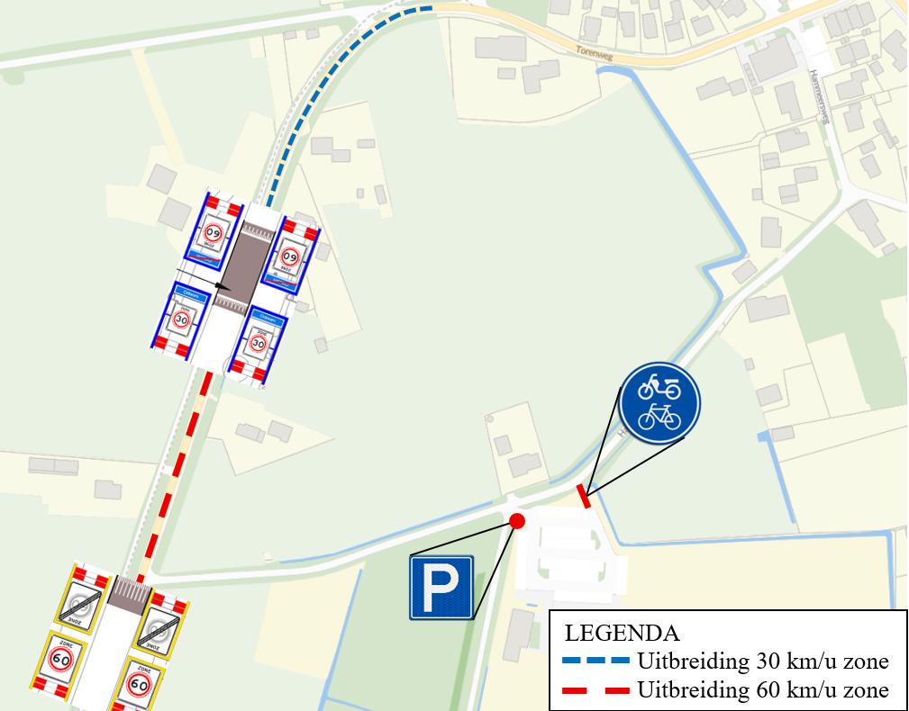 Uitbreiden 30 km/u zone en 60 km/u zone Torenweg en instellen fietspad en parkeerplaats Hammeersweg Odoorn