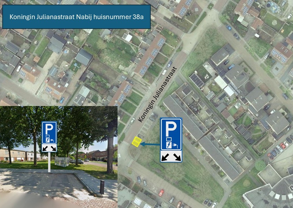 ● ter uitbreiding van het netwerk, om de groeiende vraag naar oplaadgelegenheid te faciliteren behoefte bestaat aan een laadpaal met 2 parkeerplaatsen voor het opladen van elektrische voertuigen in de omgeving van de Koningin Julianastraat;