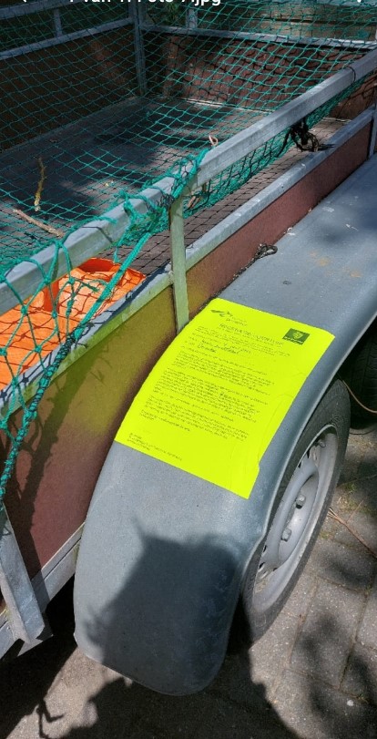 Reden hiervoor is dat wij op 10-6-2024 op de openbare parkeerplaats aan de Korte Zandstraat, te Deventer de volgende aanhanger hebben aangetroffen: