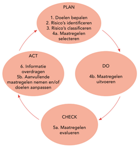 Om het proces van risicomanagement gestructureerd te laten verlopen zijn de volgende zes generieke processtappen met drie bijbehorende vragen opgenomen: