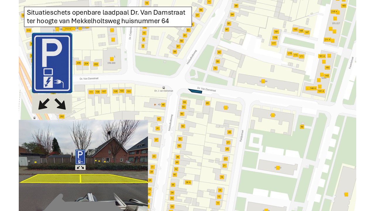 dat op basis van de hiervoor genoemde beleidsregel en de plankaart laadinfrastructuur een geschikte locatie is gevonden voor een laadvoorziening op de Dr. Van Damstraat ter hoogte van Mekkelholtsweg huisnummer 64;