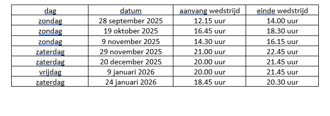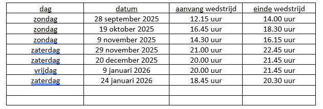 dat er in de loop van het seizoen mogelijk wedstrijden worden ingelast c.q. er wedstrijddata of tijdstippen worden gewijzigd;