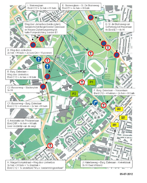 dat het in verband met het voorgaande gewenst is om op de wedstrijddagen een aantal wegen rond het stadion af te sluiten voor gemotoriseerd verkeer uitgezonderd bestemmingsverkeer;