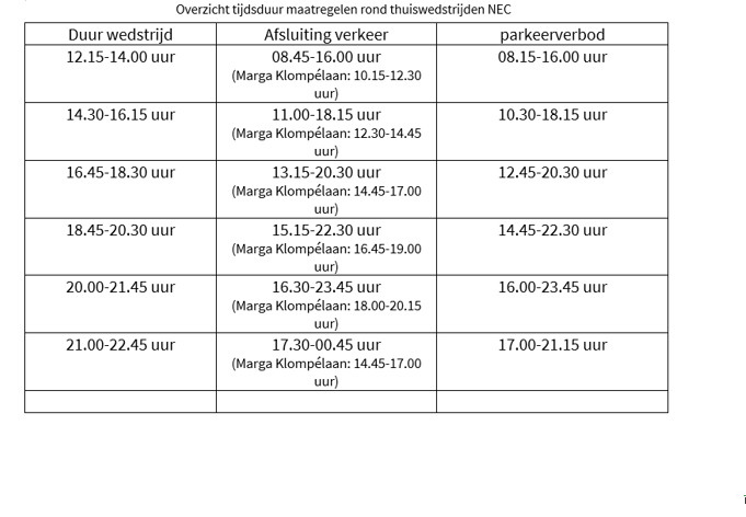 dat dit kan betekenen dat in situaties waarin dat nodig is de tijdelijke maatregelen in verband met de thuiswedstrijden van NEC hier op worden aangepast;