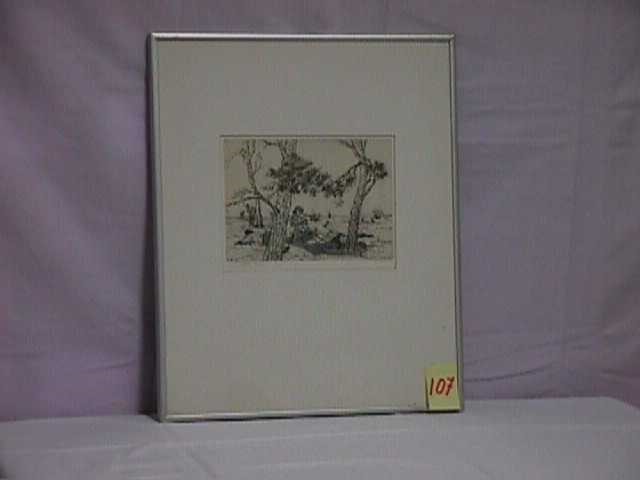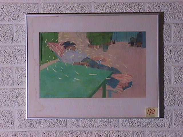 Kunstenaar/schilder: Anna Metz Voorstelling : Oma in stoel met schaduw (pentekening+passe –partout (zonder lijst) |