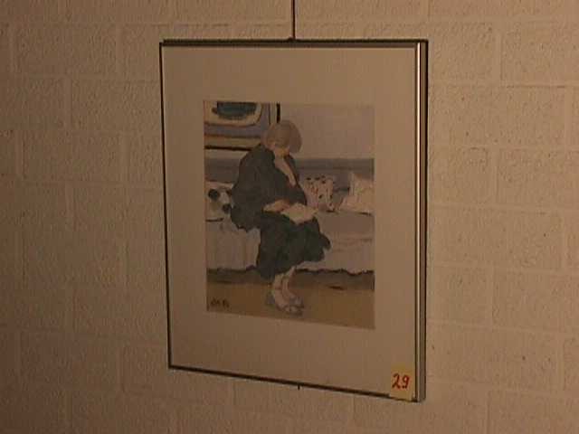 Kunstenaar/schilder: Anna Metz Voorstelling : Wachtkamer dierenarts (pentekening+passe –partout (zonder lijst) |