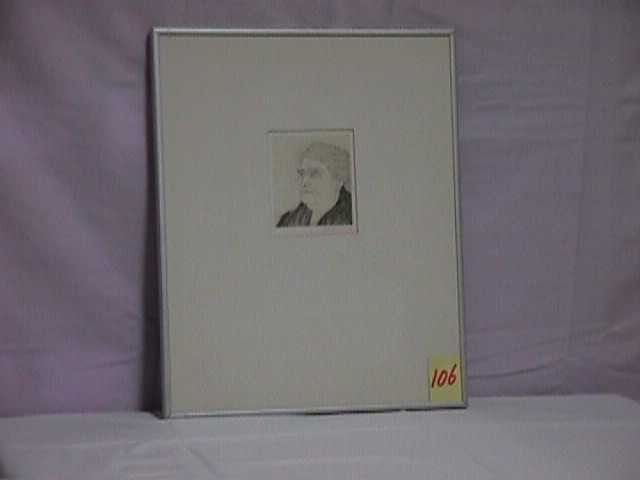 Kunstenaar/schilder: Anna Metz Voorstelling : Oma in stoel (pentekening+passe –partout (zonder lijst) |