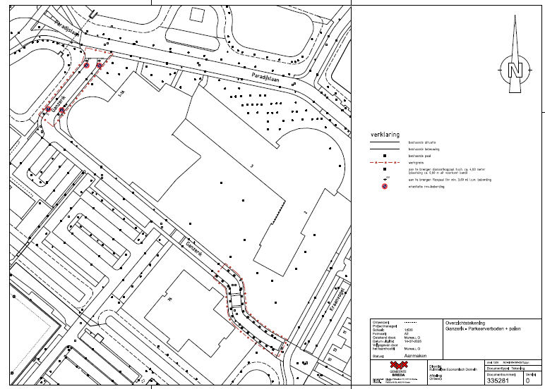 Tekening ‘Overzichtstekening Ganzerik – parkeerverboden + palen’.