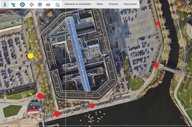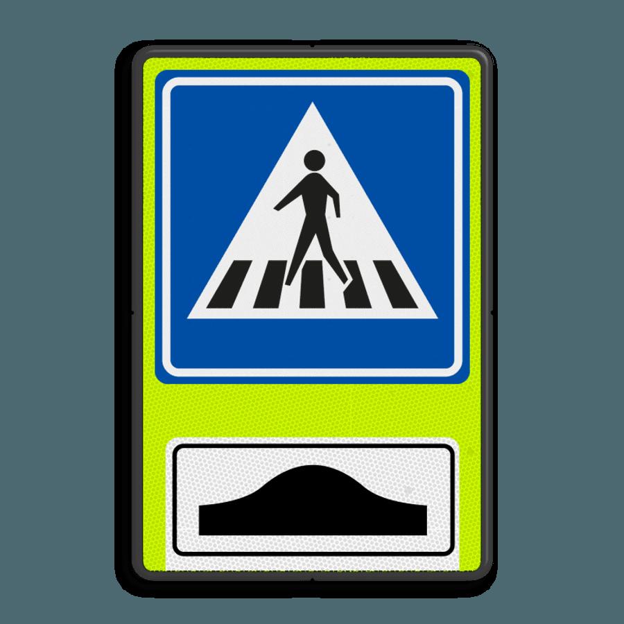 Gele stip is drempel met zebrapad , hierbij 2x verkeersbord L02f: