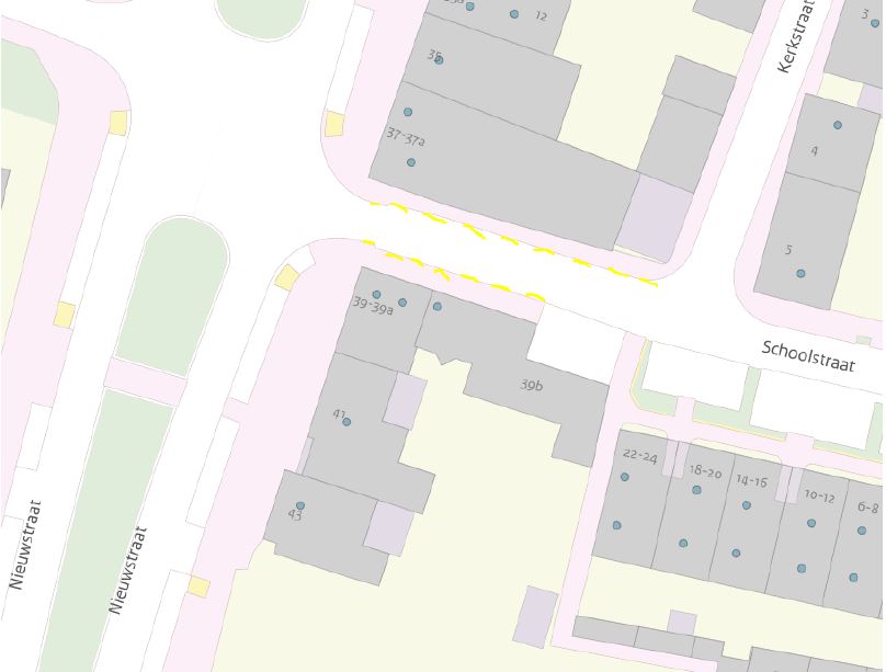 Op de hoek Nieuwstraat/ Schoolstraat wordt de doorgang regelmatig belemmerd door geparkeerde voertuigen, wanneer gelijktijdig laad en losactiviteiten plaats vinden. Door parkeren te verbieden kunnen de economische activiteiten wel plaatsvinden en blijft de doorgang voldoende beschikbaar.