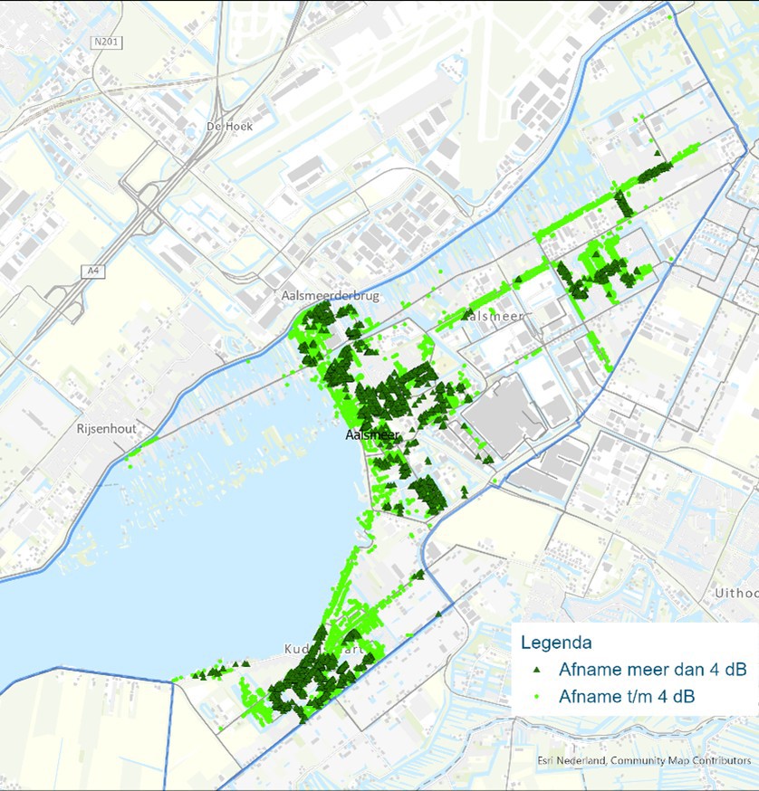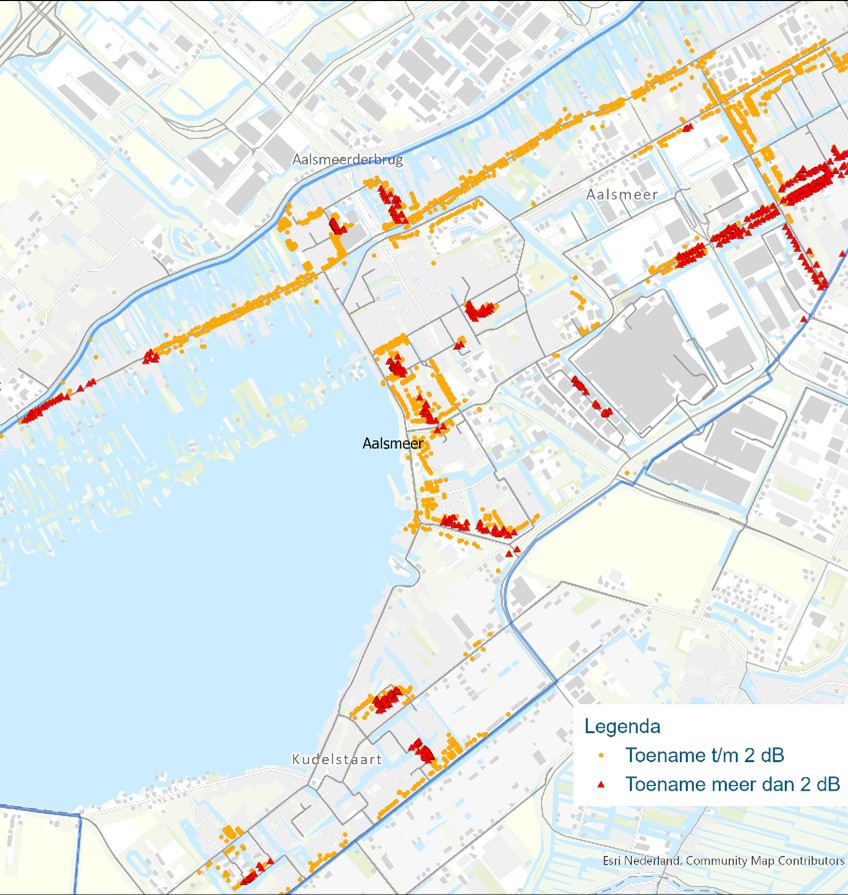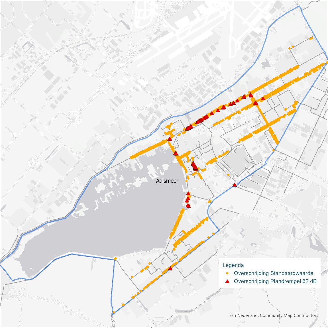 Voor Aalsmeer geldt dat de knelpunten bij woningen in de omgeving Stationsweg in de berekeningen voor 2021 zich niet meer voordoen.
