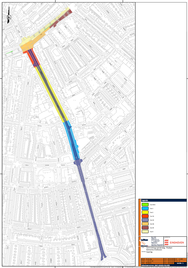 De tijdelijke verkeersmaatregelen zijn – per fase – weergegeven op onderstaande tekeningen. De genoemde planning is onder voorbehoud. Afhankelijk van het verloop van de werkzaamheden kunnen zich hierin wijzigingen voordoen. De tijdelijke verkeersmaatregelen zullen van kracht blijven tot de aanleg en de herinrichting en het onderhoud volledig zijn afgerond.