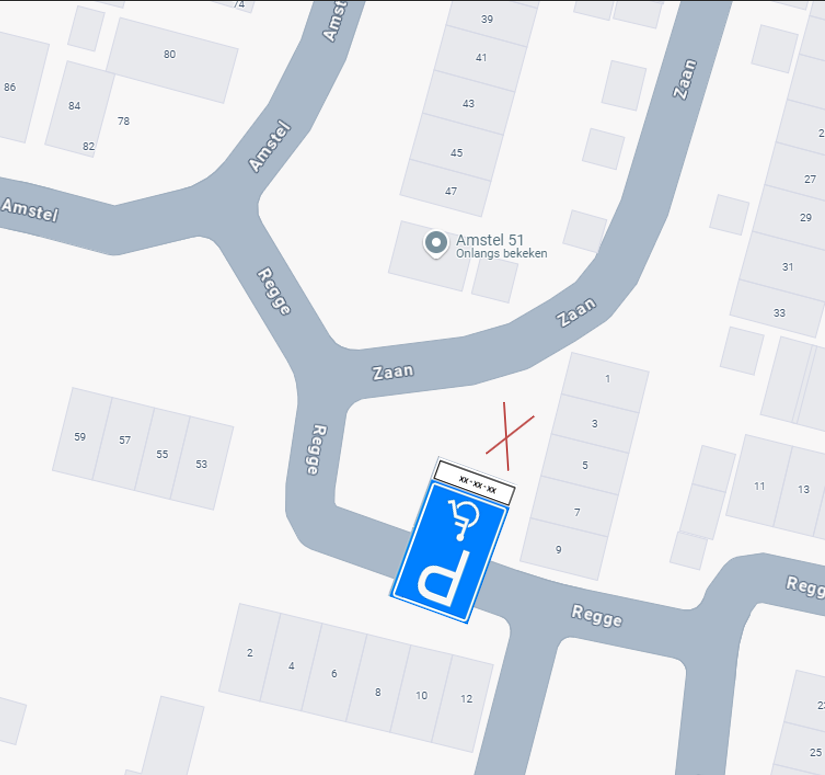 door het plaatsen van bord E6, volgens bijlage 1 van het RVV 1990 (inclusief onderbord OB309 met kentekennummer), op de parkeerplaats ter hoogte van Regge 5 een gereserveerde gehandicaptenparkeerplaats op kenteken te reserveren;