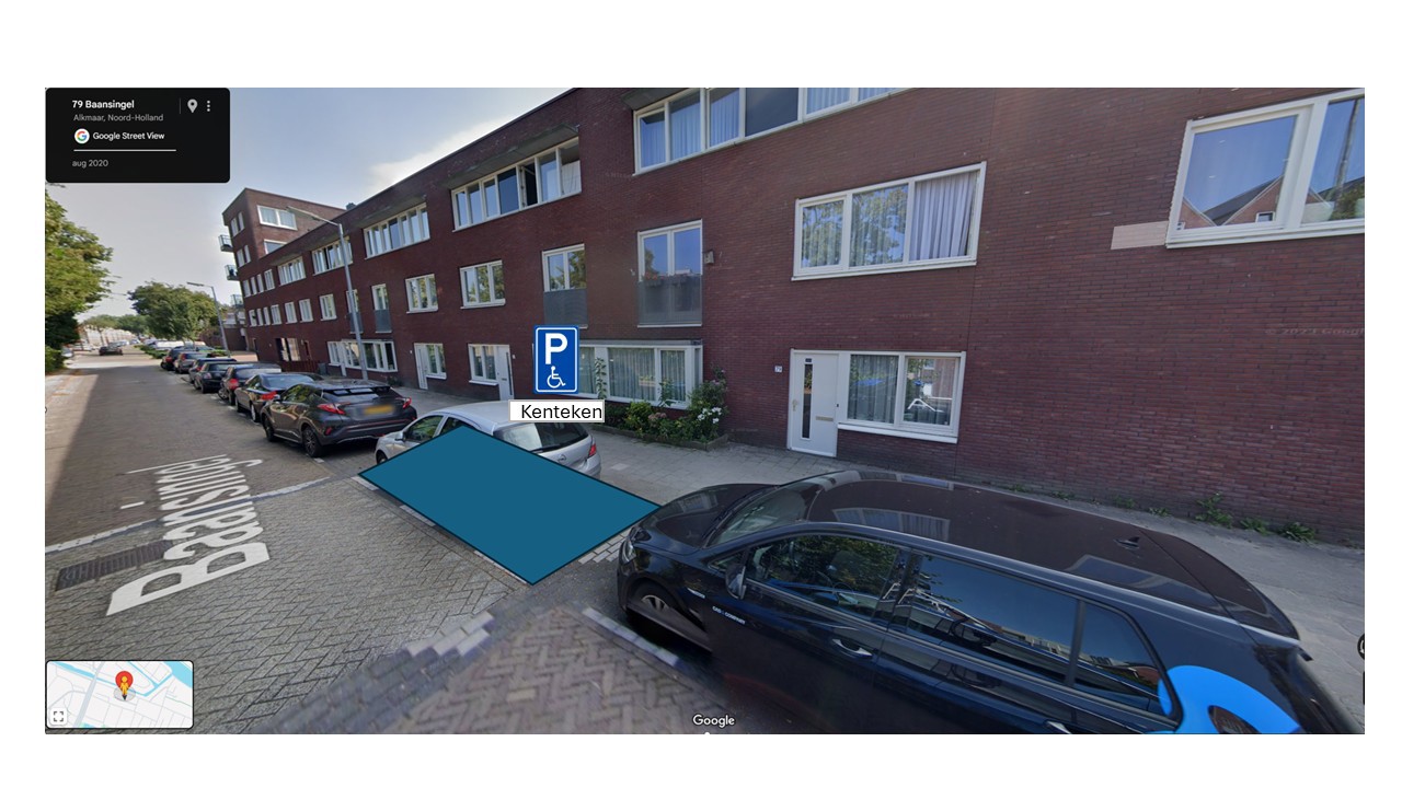 Een bewoner van de Baansingel heeft een verzoek ingediend voor een individuele gehandicaptenparkeerplaats nabij de ingang van de woning. De aanvrager voldoet aan de voorwaarden uit het gemeentelijk beleid voor het toewijzen van een individuele gehandicaptenparkeerplaats. De gemeente heeft aan de aanvrager een gehandicaptenparkeerkaart verstrekt, omdat hij/zij niet of slechts met grote moeite andere dan over korte afstand te voet kan voortbewegen.