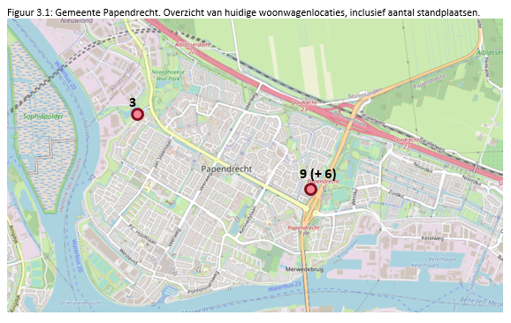 In Papendrecht zijn twee woonwagenlocaties; de Randweg (3 standplaatsen) en de Amberdreef (9 woonwagenwoningen). Daarnaast zijn er aan de Amberdreef zes patiowoningen waarvan een groot deel door kinderen van de woonwagenbewoners van de Amberdreef worden bewoond. Als gevolg van de Europese rechtspraak en uitspraken van het College voor de Rechten van de Mens heeft de gemeente in het Papendrechts Woonplan 2020-2030 als actie opgenomen om de wensen en ruimtelijke mogelijkheden voor uitbreiding van het aantal woonwagenstandplaatsen te onderzoeken. In grote lijnen heeft de gemeente conform het Woonplan de afgelopen jaren diverse acties ondernomen. Sinds 2018 wordt een wachtlijst voor woonwagenstandplaatsen bijgehouden1. Iedereen die zich daarbij aanmeldt, wordt ook gevraagd zijn of haar woonvoorkeuren aan te geven. Tussentijds is door de gemeente gecheckt of de geuite woonvoorkeuren nog actueel zijn. Daarnaast heeft in 2022 een eerste verkennende inventarisatie plaatsgevonden van mogelijk (geschikt te maken) locaties voor nieuwe woonwagenstandplaatsen.