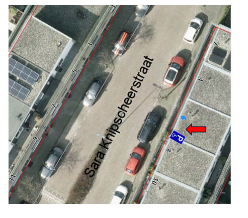 Verkeersbesluit voor de aanleg van een gereserveerde gehandicaptenparkeerplaats op kenteken ter hoogte van Sara Knipscheerstraat nabij perceel 6 te Leiden