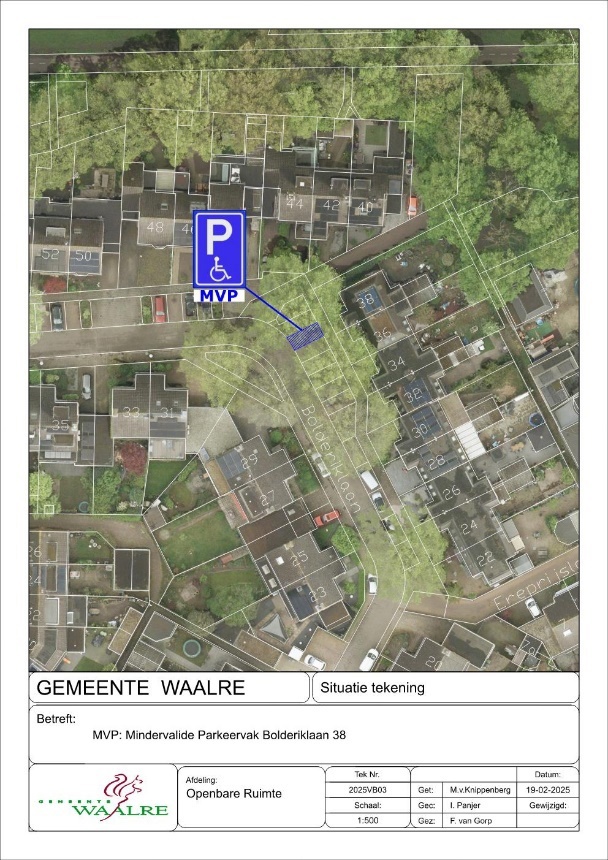 Tot het intrekken van het verkeersbesluit met kenmerk 2025-02, gepubliceerd op 21 maart 2025, voor het aanwijzen van een gehandicaptenparkeerplaats ter hoogte van Bolderiklaan 38.