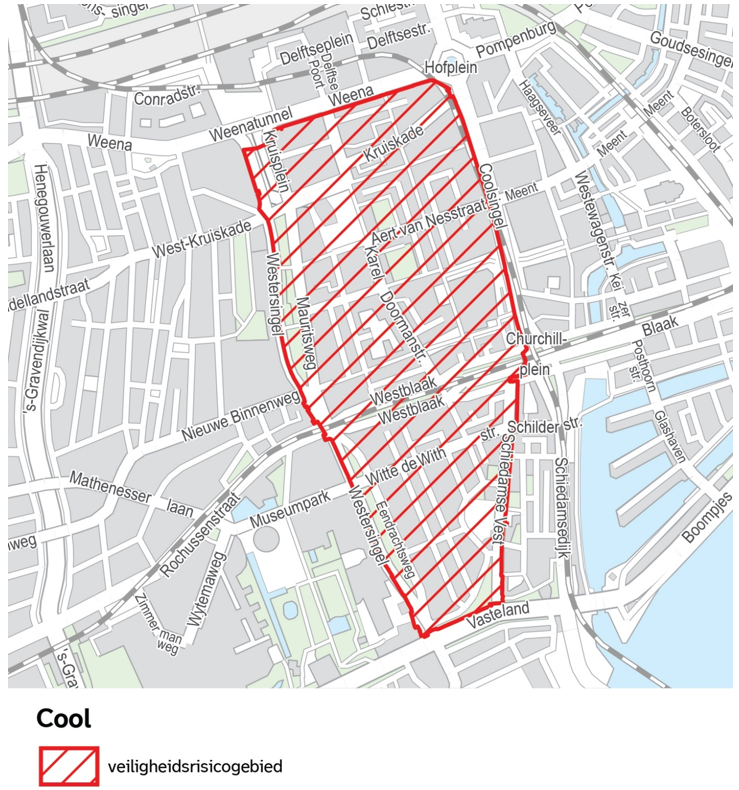 Kaart 1.5: detailkaart CBS-buurt Cool behorende bij de overzichtskaart van het veiligheidsrisicogebied Centrum