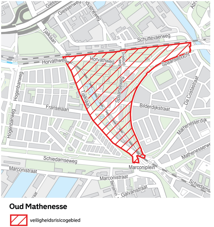 Kaart 2.1: detailkaart CBS-buurt Oud-Mathenesse behorende bij de overzichtskaart van het veiligheidsrisicogebied Delfshaven