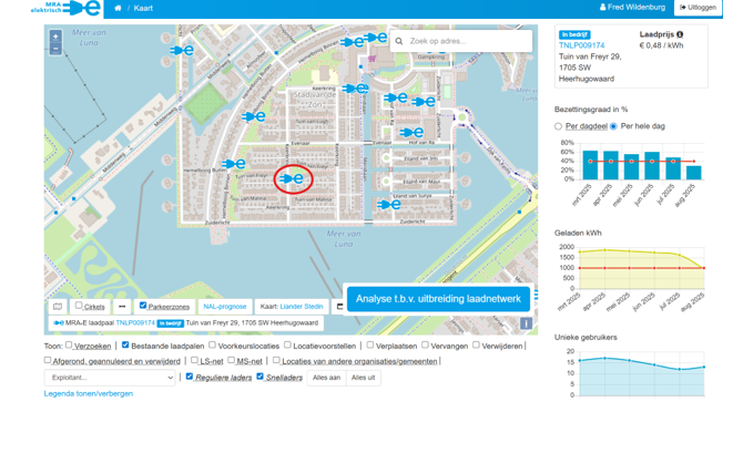 Op basis daarvan is op de volgende criteria getoetst. De eerste twee criteria gaan over het gebruik van de laadpaal op de betreffende locatie. Aangezien deze er nog niet staat vervallen die. De overige drie criteria zijn: er is geen ander oplaadobject in procedure binnen 200m loopafstand; er is geen ander oplaadobject binnen 200m loopafstand die minder afzetvolume heeft dan 1000 kWh; er is geen oplaadobject binnen 200m loopafstand met een bezettingsgraad van minder dan 40%. Van alle bestaande laadlocaties ligt slechts één locatie binnen 200m loopafstand vanaf deze locatie. Dit is de laadpaal nabij Tuin van Freyr. Dit laadpunt heeft een bezettingsgraad boven de 40% ten tijden van de aanvraag en een afname van boven de 1000kWh, waardoor voldaan wordt aan de gestelde criteria.