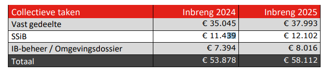 Het budget voor de uitvoering van de collectieve taken (programma 3) bestaat voor 2025 uit drie onderdelen, die op verschillende wijzen door de deelnemers worden gefinancierd, te weten: