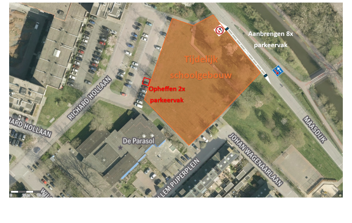 Verkeersbesluit voor het aanbrengen van 8 nieuwe parkeervakken aan Maasdijk en opheffen van 2 parkeervakken aan Richard Hollaan ten behoeve van een tijdelijk schoolgebouw te Maassluis