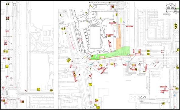 Deze werkzaamheden worden uitgevoerd op het afgesloten werkvak van de noordelijke rijbaan van de Aziëweg, tussen de Amerikaweg inclusief het kruispunt en de Europaweg. De te nemen verkeersmaatregelen hebben mede betrekking op de rondom liggende vrije ruimte/veiligheidsruimte.