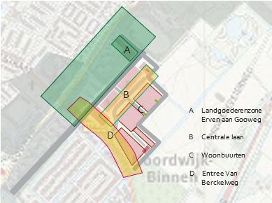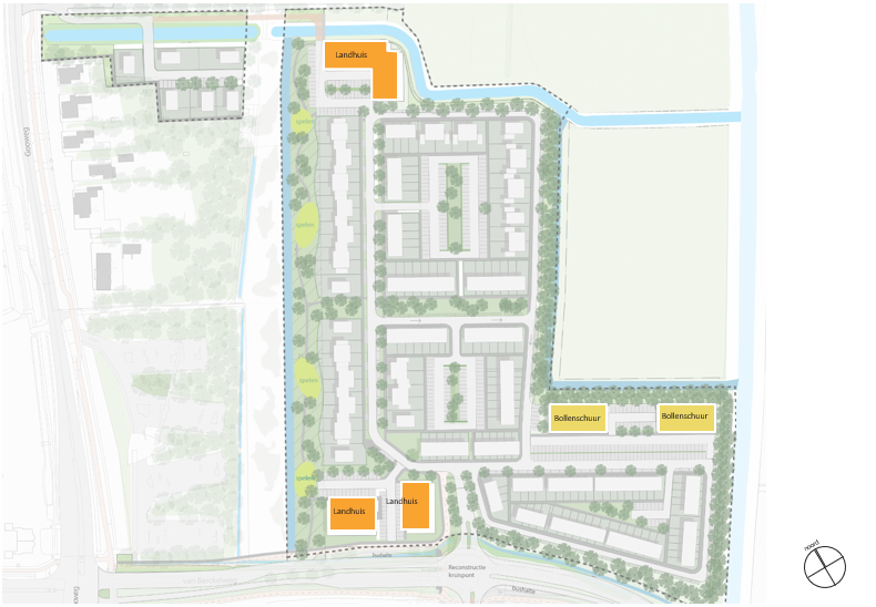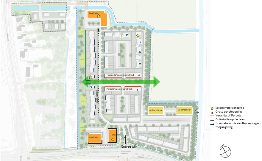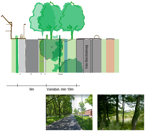 De aansluiting op de Van Berckelweg krijgt vorm door een groenzone met waar mogelijk bomen, waarbij de landgoederenzone als het ware wordt ingeleid vanaf het zuidoosten.