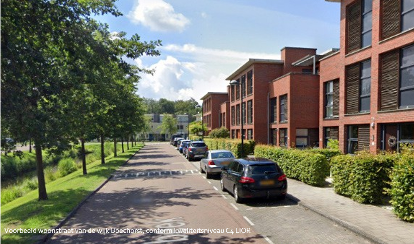 Voetpaden liggen conform de LIOR langs alle woonstraten in de omgeving.