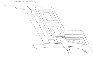 De locatie voor de appartementen- complexen is zo gekozen dat deze ofwel de entree van het gebied markeren (vanaf de Van Berckelweg) of als baken aan het open landschap liggen of de beeindiging vormt van de centrale laan in het noorden. Door de wegen rondom de blokken te leggen zijn alle woningen naar het open landschap en de interne wegen- en groenstructuur georienteerd. De meeste parkeerplaatsen bevinden zich in de binnenhoven, achter de woonblokken.